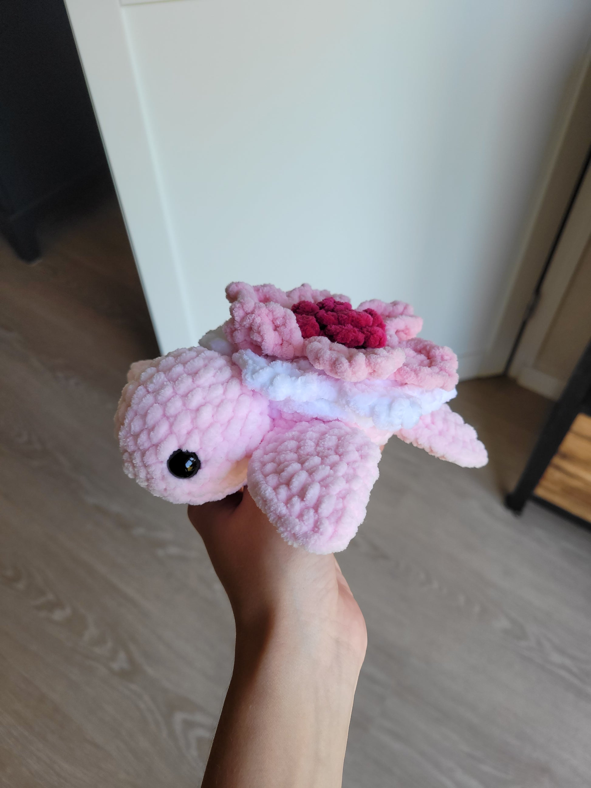 Voici une adorable tortue sakura au crochet qui recherche sa nouvelle famille🌺