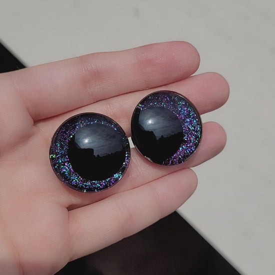 Chaque paire d'yeux est unique car elles sont confectionnés à la main par mes soins. le placement des paillettes et la teinte des couleurs peuvent légèrement différer.